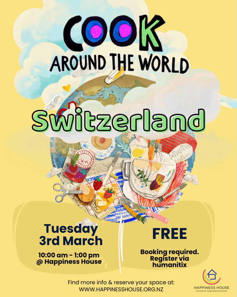 Join us at Happiness House as we kick off the year of Cook Around the World with a hands on Swiss cooking session. This is all about coming together through kai (food), culture, and connection.