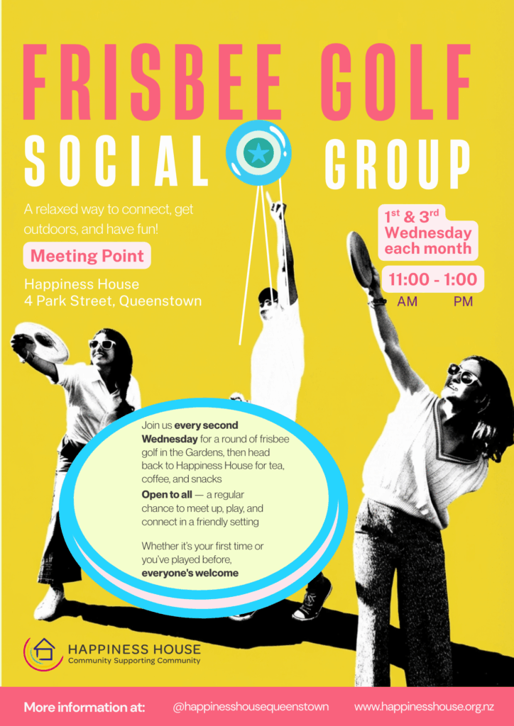 On the 1st & 3rd Wednesday morning of the month, we gather at Happiness House before heading to the Queenstown Gardens for a friendly round of frisbee golf. Afterwards, we return to Happiness House to enjoy tea, coffee, and snacks together.